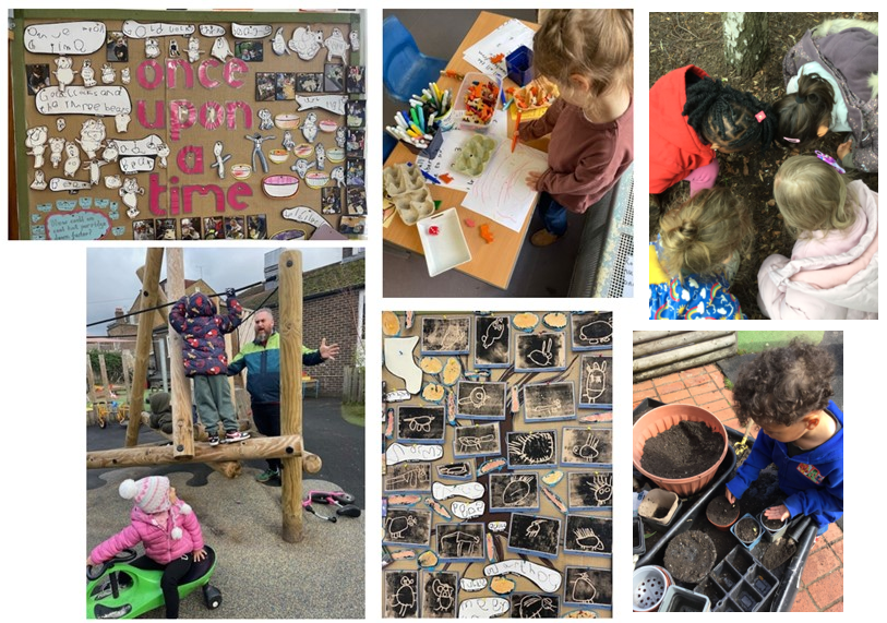 Nursery is very play-based, blending child initiated play and adult-led activities. The curriculum is thoughtfully planned in line with the Early Years Framework and topics draw upon past and present, on people, cultures and communities and on the natural world. The teaching is sequenced to allow children to build their learning cumulatively and to give them the best start as they transition into Reception.