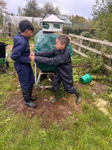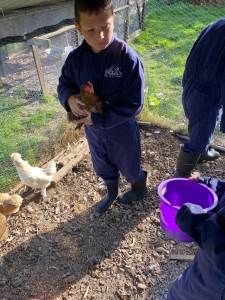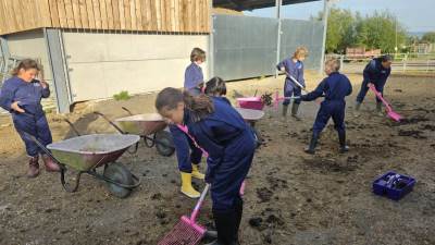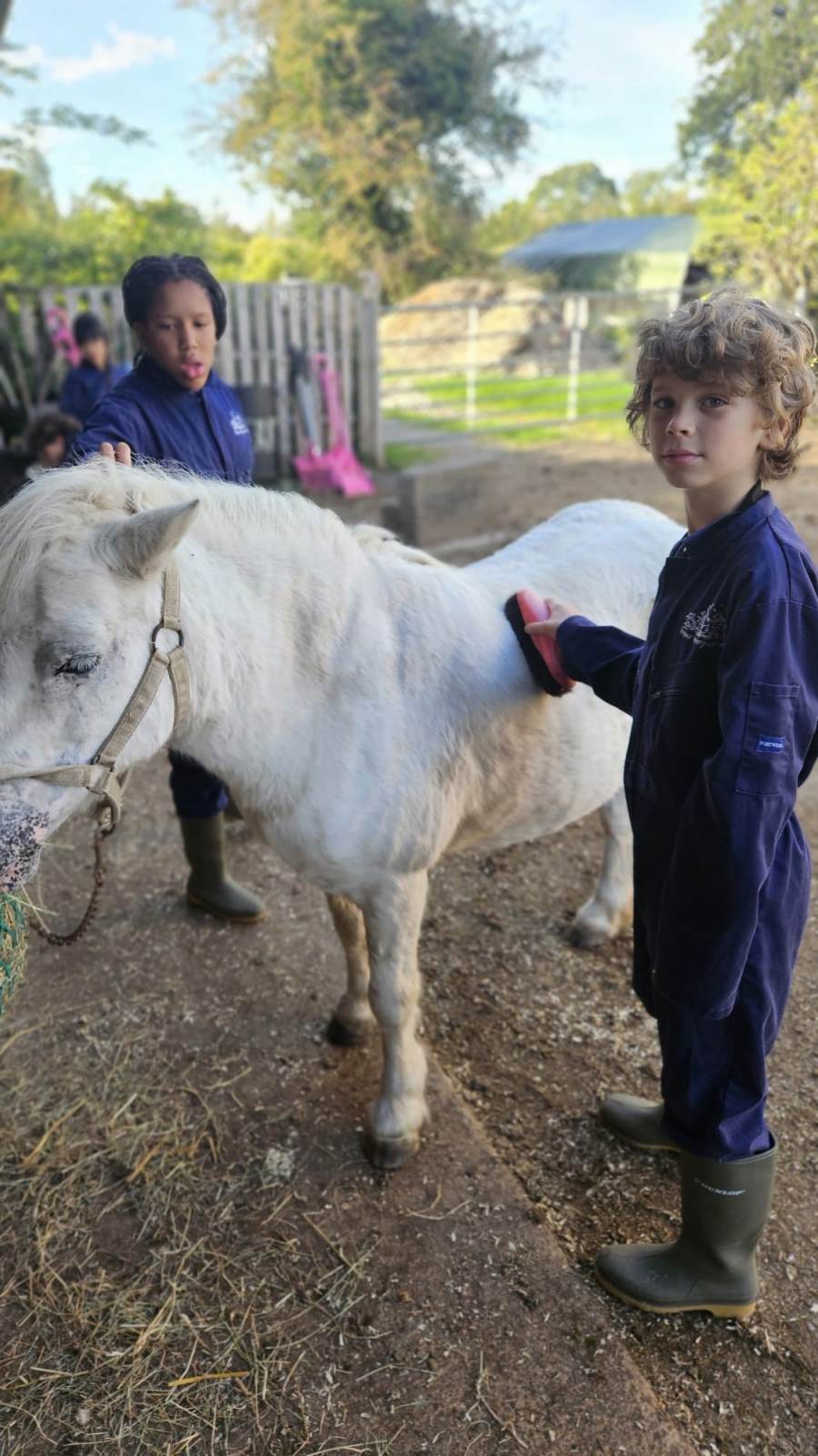 Year 6 are fully in the swing of farm life now . Tending the poultry this morning and the morning feeds completed. Children have enjoyed grooming and caring for the ponies.